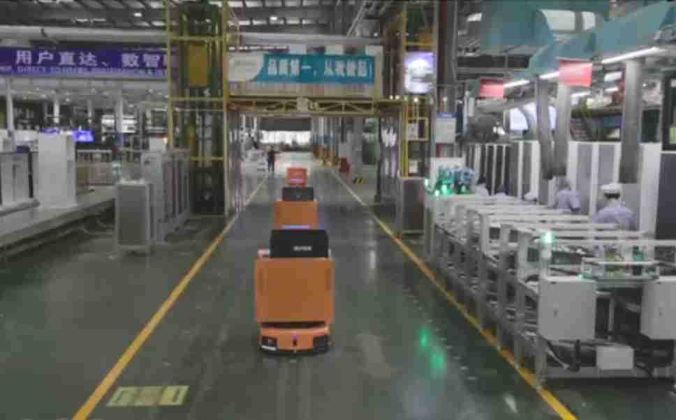 为车载冰箱物流配送打造的智能解决方案,,包含产中物流通过潜伏举升AMR搬运至线边,,产后成品物流智能仓储,,流程包含产中物流智能齐套入库,,,,线边安灯叫料AMR智能配送至线边,,,,成品入库、、、、出库,,通过无人堆高车机器人,,,,智能仓储管理替代人工作业管理,,实现更高存储、、、更高效率、、、更具柔性化的解决方案。。。